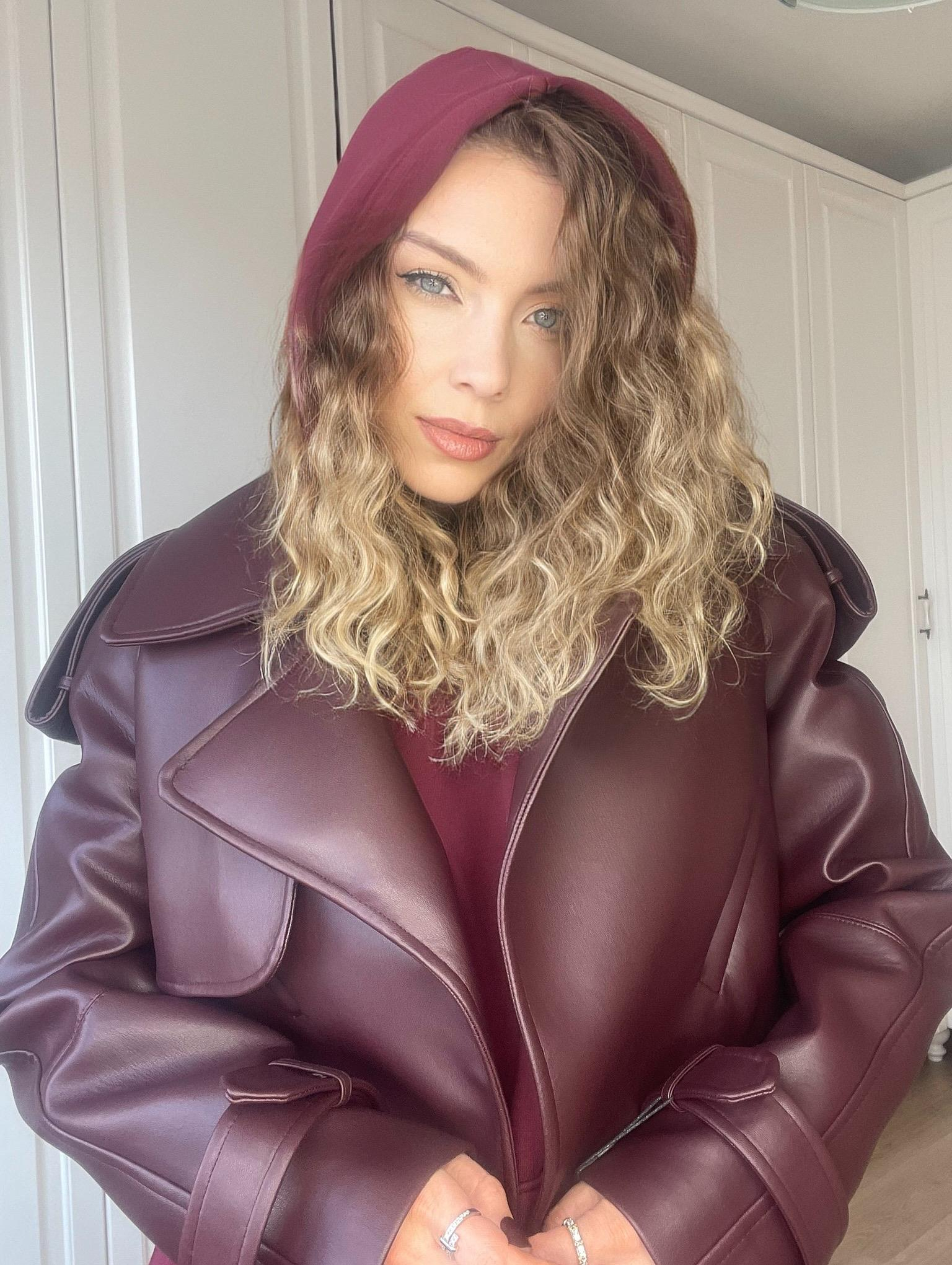 Bordo Cep Detaylı Tokalı Crop Deri Ceket